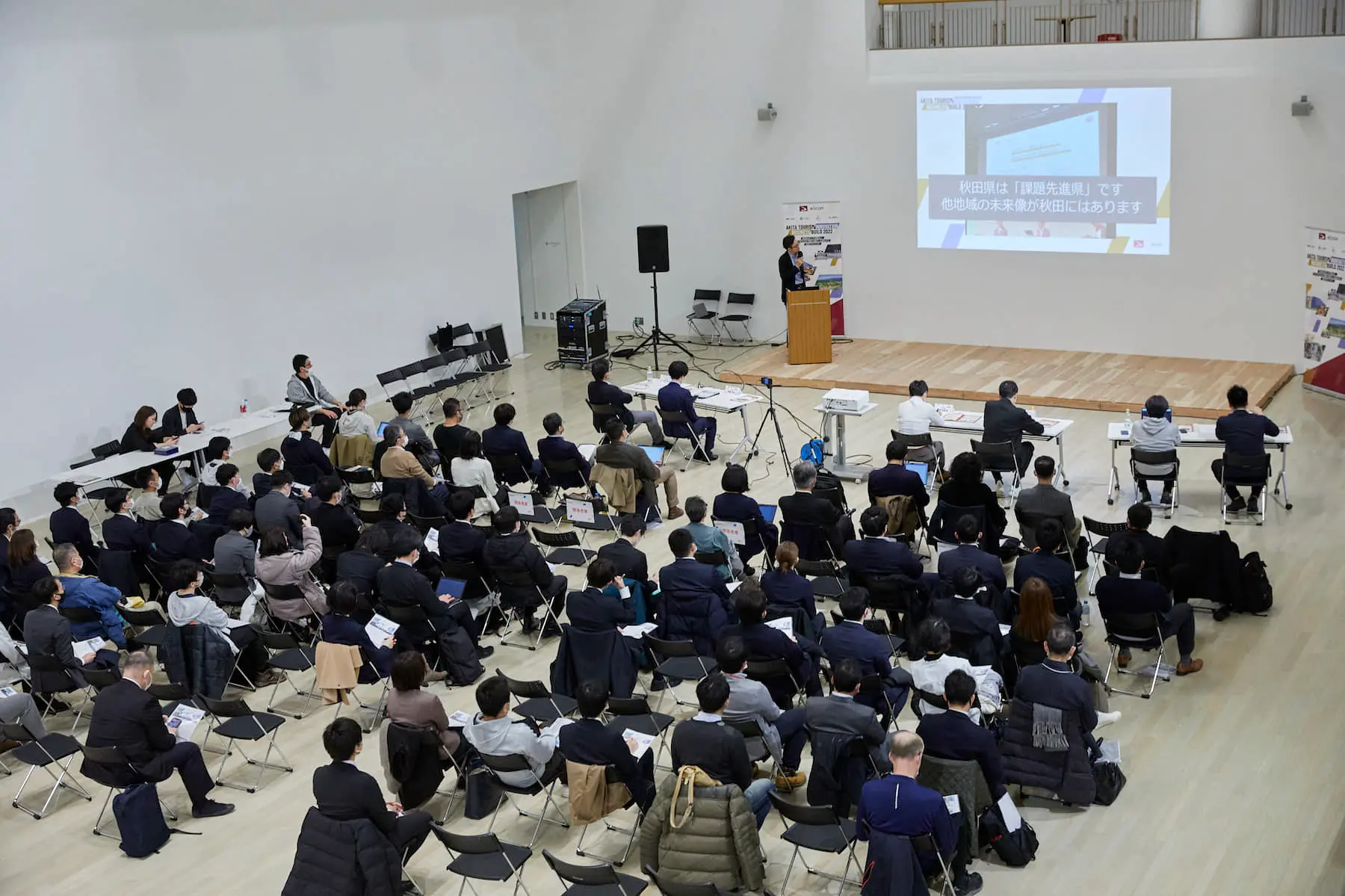 その共創成果を発表するデモデイが、去る3月3日、秋田市文化創造館にて開催された。当日は、4つの共創プロジェクトについての成果発表のほか、地域発イノベーションの最前線で活躍するメンターによるスペシャルセッション、今回参画した4自治体の担当者によるイノベーターズトークも実施。自治体関係者や観光関連の事業者などで埋め尽くされた会場内は、秋田発のイノベーションへの期待と熱気に包まれた。本記事では、デモデイ当日の様子をレポートする。