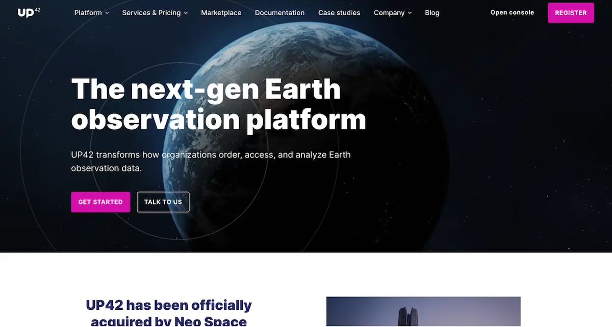 UP42は地球観測データをAPI経由で取得・活用できるプラットフォームを提供する企業です。顧客は地理データ分析を容易に組み込むことができ、企業のデータ利活用を促進しています。