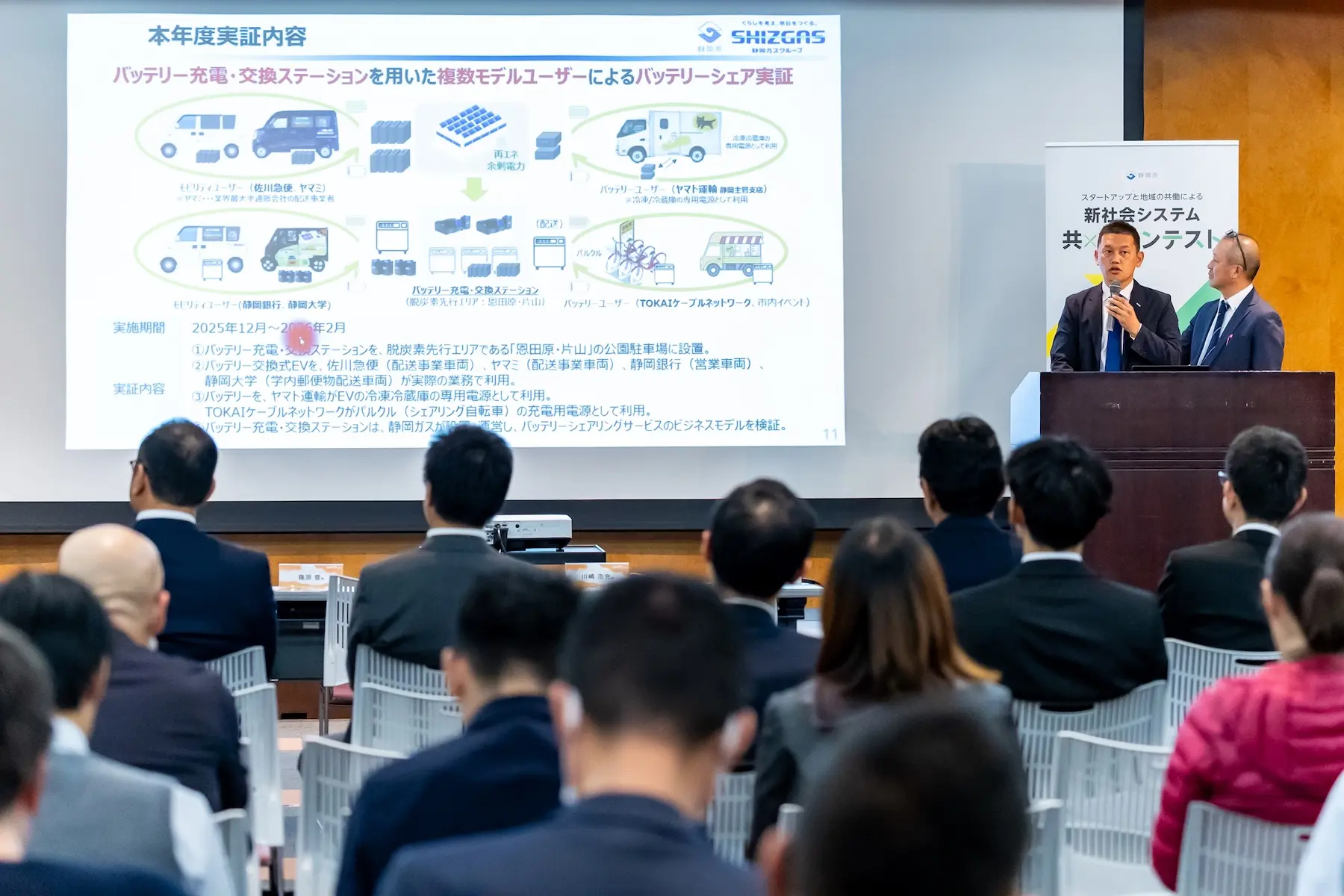今回の実証実験には、当初の実証メンバー4社から、実際のユーザーとなる6団体が加わり、合計10社で取組を実施していく。2025年12月から2026年2月にかけ、静岡市内の脱炭素先行地域に「バッテリー充電交換ステーション」を設置し、実証実験を行う。