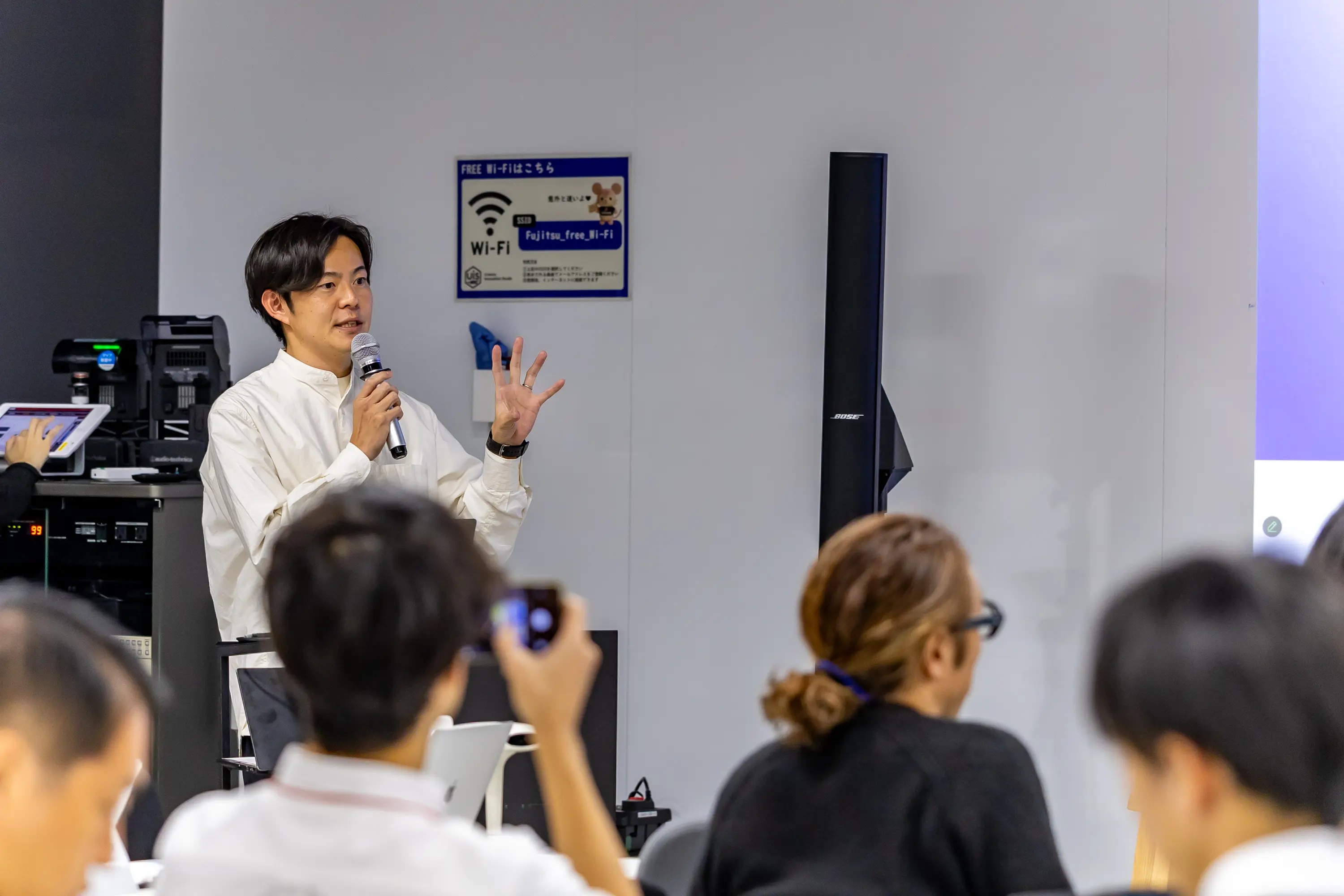 ▲オープンイノベーションをテーマにしたイベントに登壇する機会も多い成富氏。
