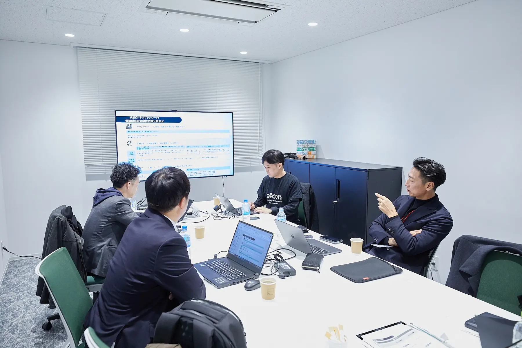 2025年12月には、共創事業の骨子を練り上げるワークショップが開催された。山梨県立スタートアップ支援センター(CINOVA YAMANASHI)で行われた同イベントには、ホスト企業と採択されたパートナー企業4社(SonicAI<ソニックエーアイ>/N2i<エヌツーアイ>/エムバース/ベスプラ)に加え、メンターと県庁職員などが集まり、山梨の未来像を描きながら熱い議論を繰り広げた。