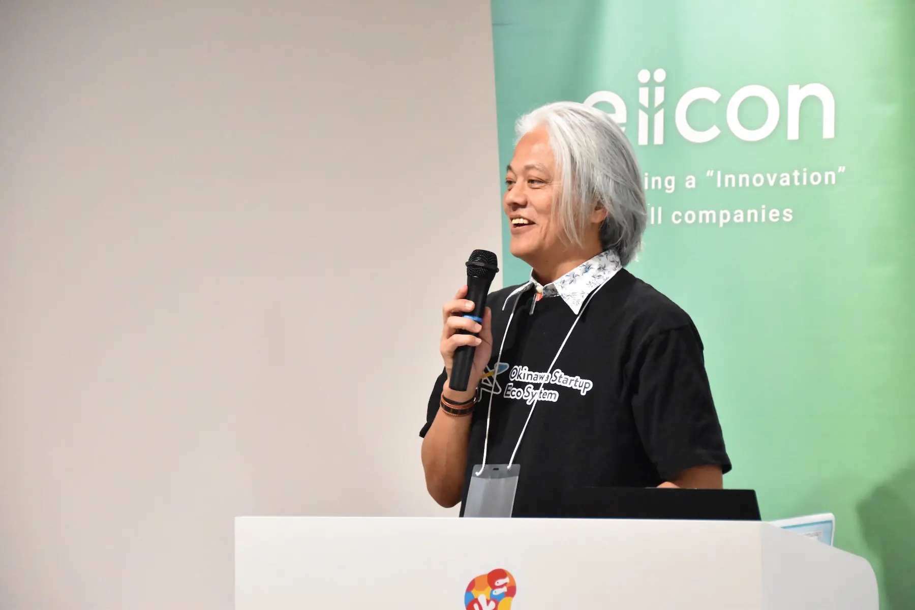 はじめに、沖縄県 商工労働部 産業政策課 課長の座喜味肇氏が開会の挨拶を行った。座喜味氏は、半年間にわたり本プログラムに挑戦したスタートアップ、ならびに運営を支えたeiiconやメンター、関係者への謝意を述べた。そのうえで、採択企業が事業を磨き上げ、沖縄が注力する産業分野に取り組んできたことに触れ、「その成果は沖縄の未来に直結する」と評価した。