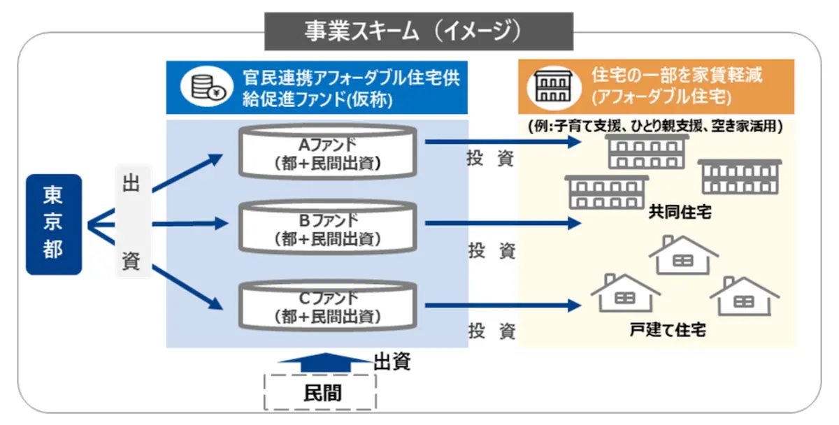 東京都は2025年に「官民連携アフォーダブル住宅供給促進ファンド」を創設しました。最大の特徴は、公共資金と民間資金を組み合わせ、サステナブルなモデルで住宅を供給しようとしている点にあります 。