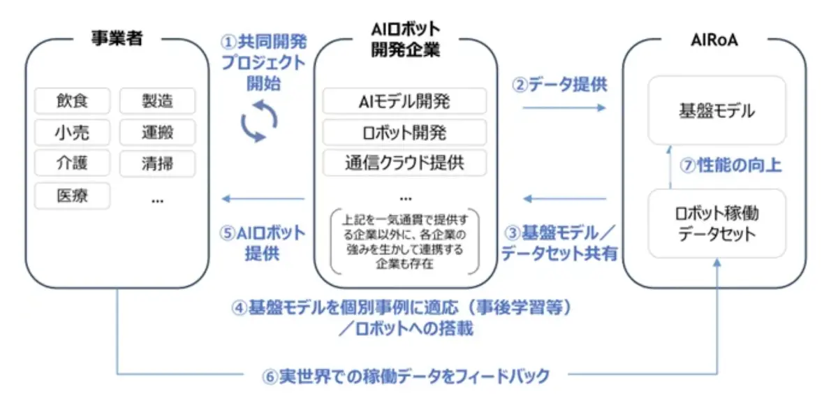 こうしたフィジカルAIの社会実装を後押しする象徴的な取り組みが、一般社団法人AIロボット協会(AIRoA)です。AIRoAは、AIとロボット技術を融合し、「ロボットデータエコシステム」の構築を目指す団体として設立されました。