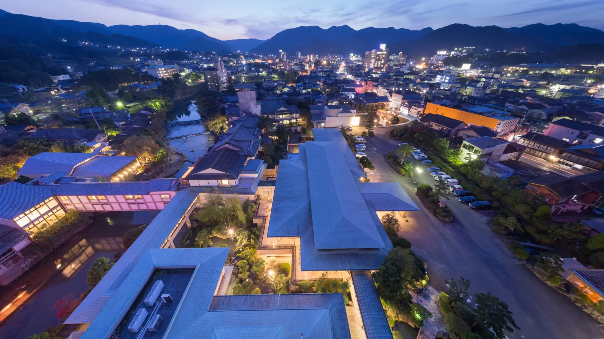 ▲和多屋別荘の外観と全景。2万坪の実証の場となる