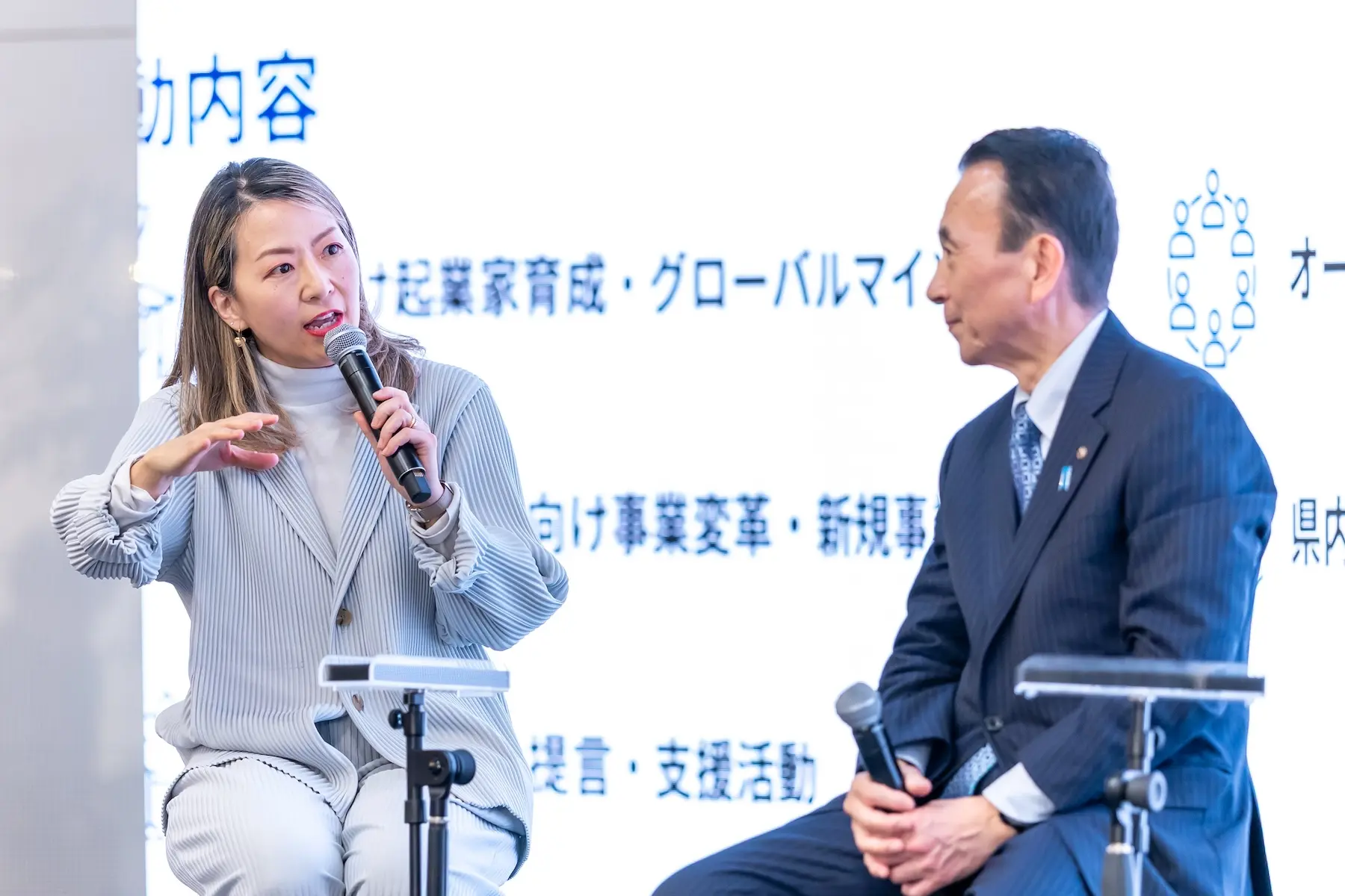 ▲モデレーター・西村氏(写真左)、静岡県知事・鈴木氏(写真右)
