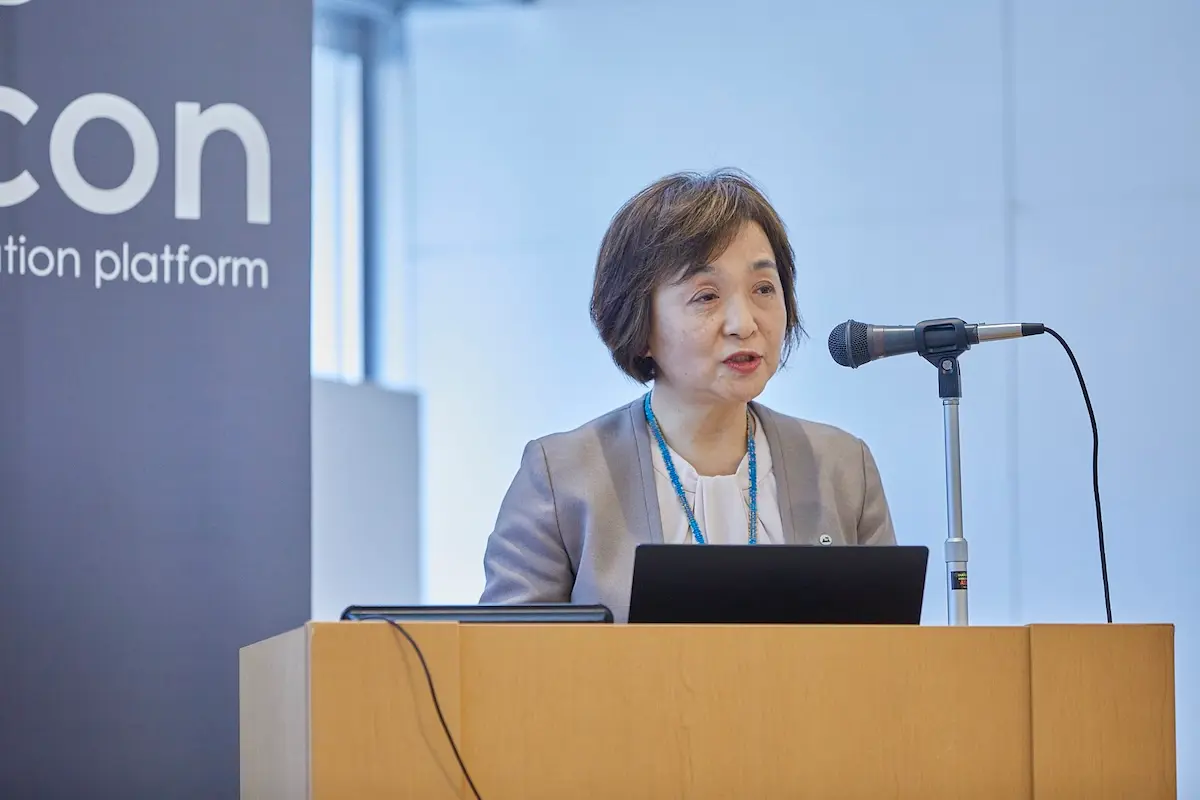 プログラムは、青森県経済産業部産業イノベーション推進課の原純子課長による、開会の挨拶から始まった。原課長は、「青森県の主要産業となっている農林水産分野等において、オープンイノベーションで未来を切り拓いていくために、県としてもできる限りの支援をする」とした上で、本日の成果発表について「互いの強みと個性を持ち寄って目的に進んで行くパートナーとして、今後も事業共創を進めてほしい」と述べた。