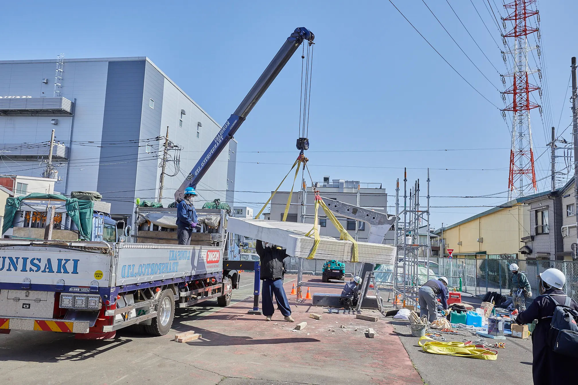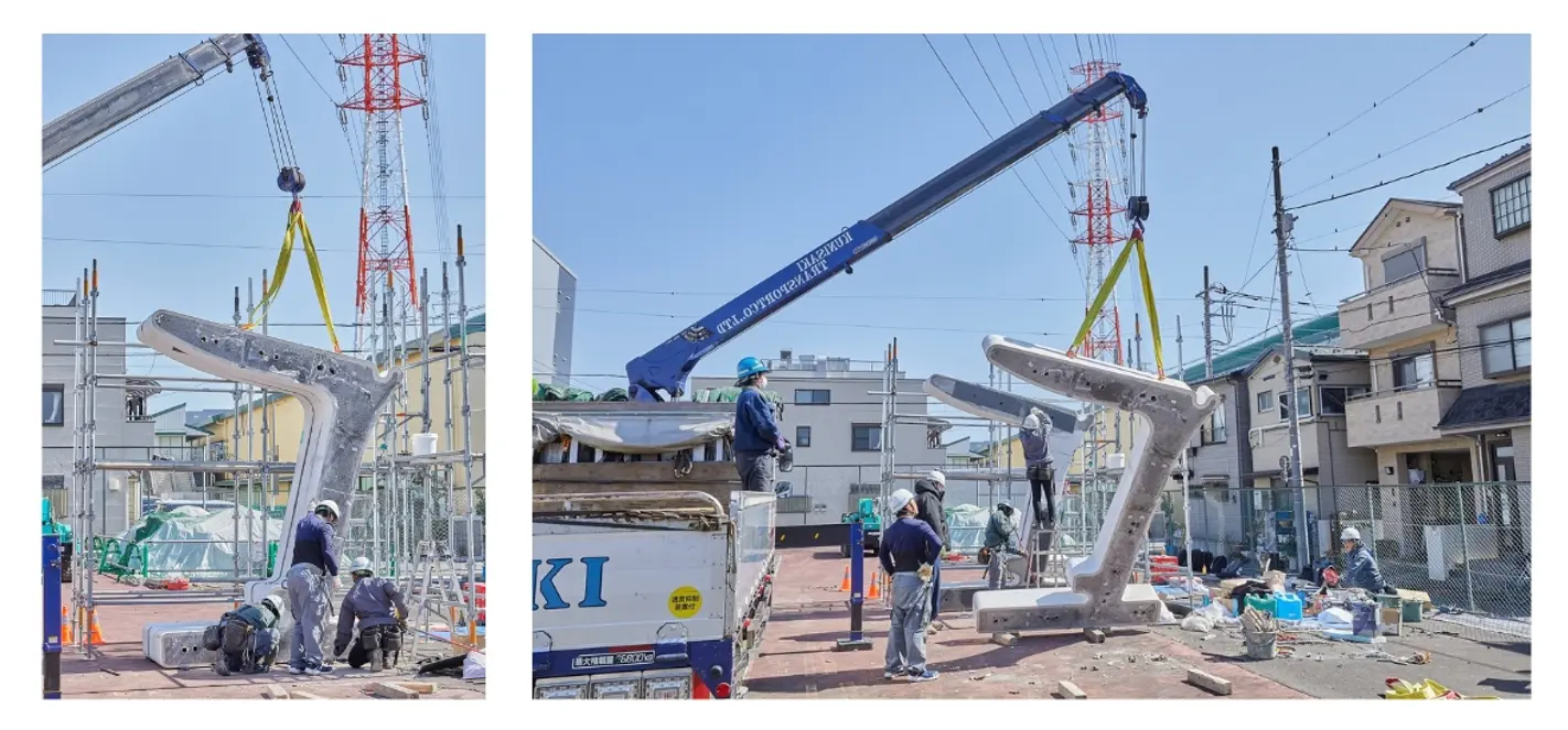 また、物流面でも工夫が必要でした。パーツは熊本の工場で製造し、その後、千葉県柏市の中継拠点まで輸送し、そこで小型トラックへ積み替えて現地に搬入するという工程を組んでいます。通常であれば大型トラック一台で済むところを、今回は都市部の施工条件に合わせた物流設計が必要になりました。