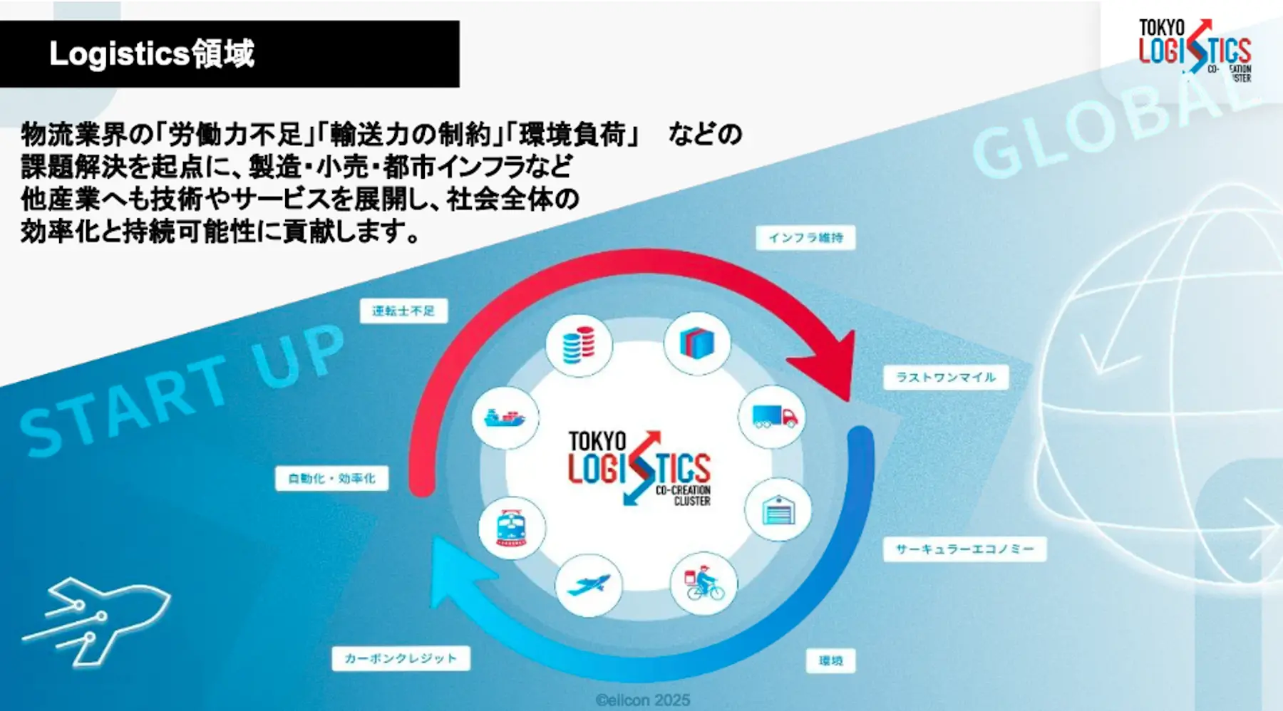 TLCCは、東京都の令和7年度「TIB CATAPULT(グローバルイノベーションに挑戦するクラスター創成事業)」に基づき組成された。代表事業者/事務局はeiiconが担い、物流事業者(セイノーホールディングス、佐川急便、三菱倉庫)と投資機関(Spiral Innovation Partners)が構成企業として参画している。