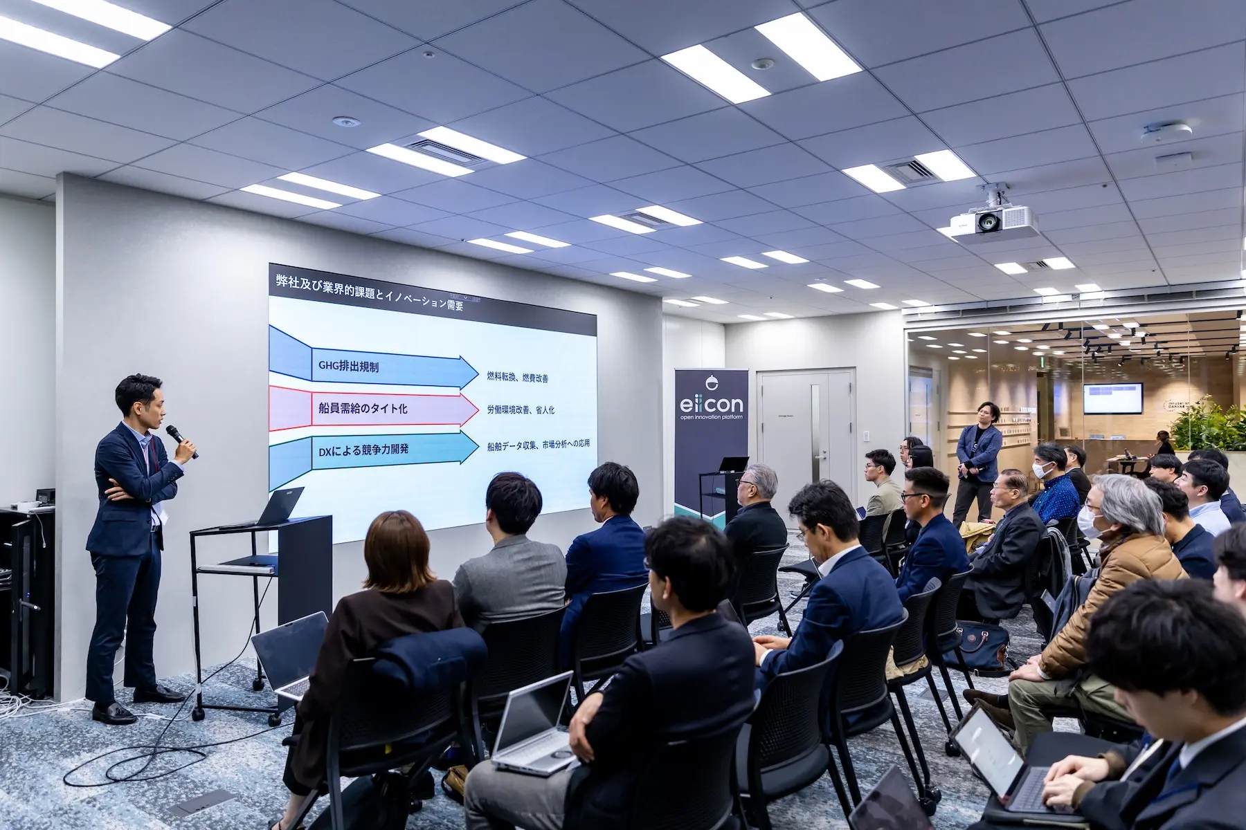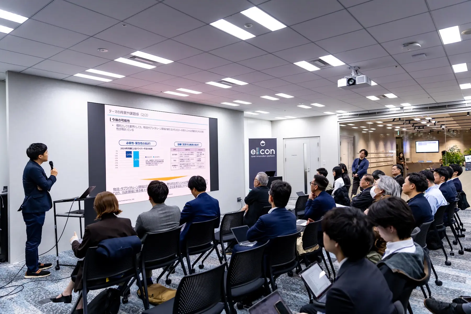 また、当日の進行を務めた株式会社eiiconの松橋寛伸氏は「社会実装まで一緒に進め上げるプロジェクトを推進したい」と力を込めた。以下に、物流大手企業や投資機関などが「今、共創で実現したい未来」を熱く語った、8社のリバースピッチの模様を登壇順にお届けする。