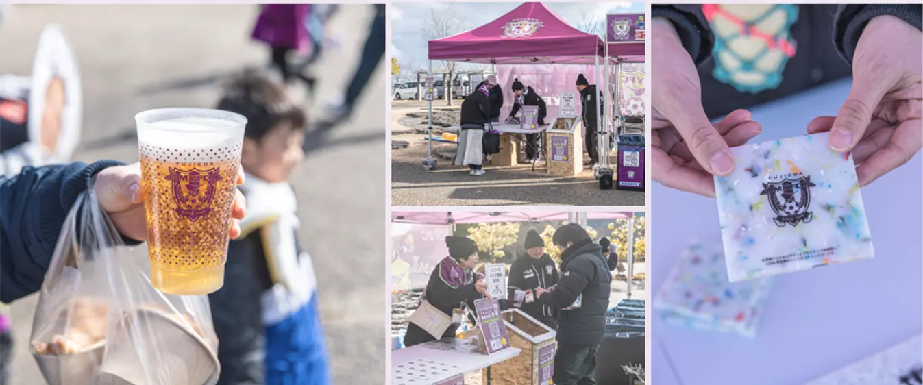 両社はまず地域企業の製造残渣を原料としたリユースカップの導入と、その環境価値の可視化に着手。将来的に子ども向けワークショップや、スポンサー企業の残渣を活かしたグッズ開発などの構想も視野に初年度はホームゲーム会場におけるリユースカップ運用の実証を行った。