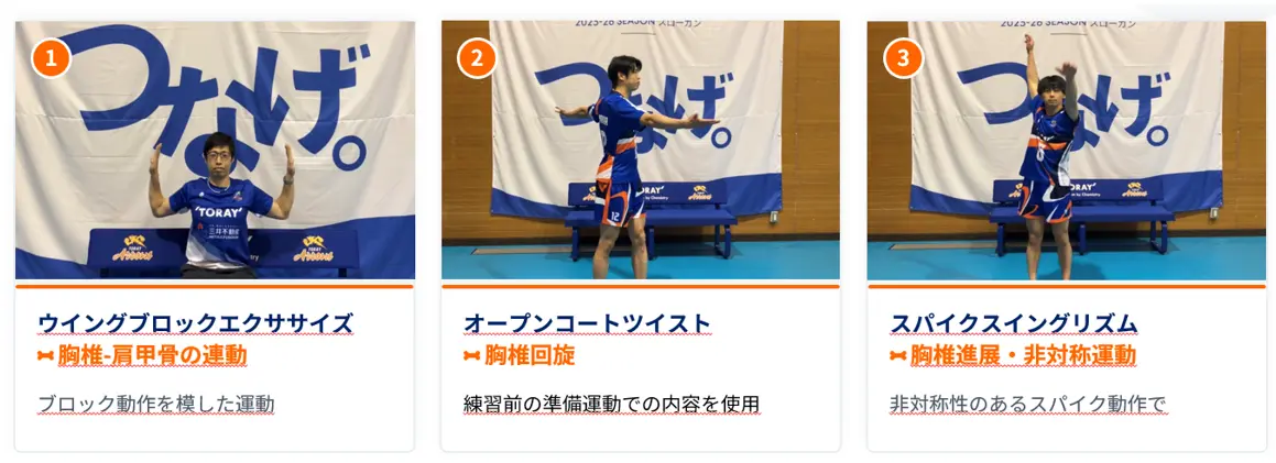 ▲首・肩まわりの不調改善を目的に、バレーボールの動きと運動療法を組み合わせた内容となっている