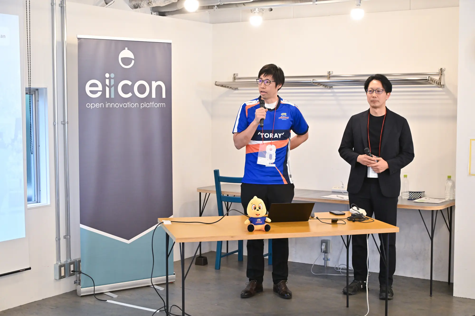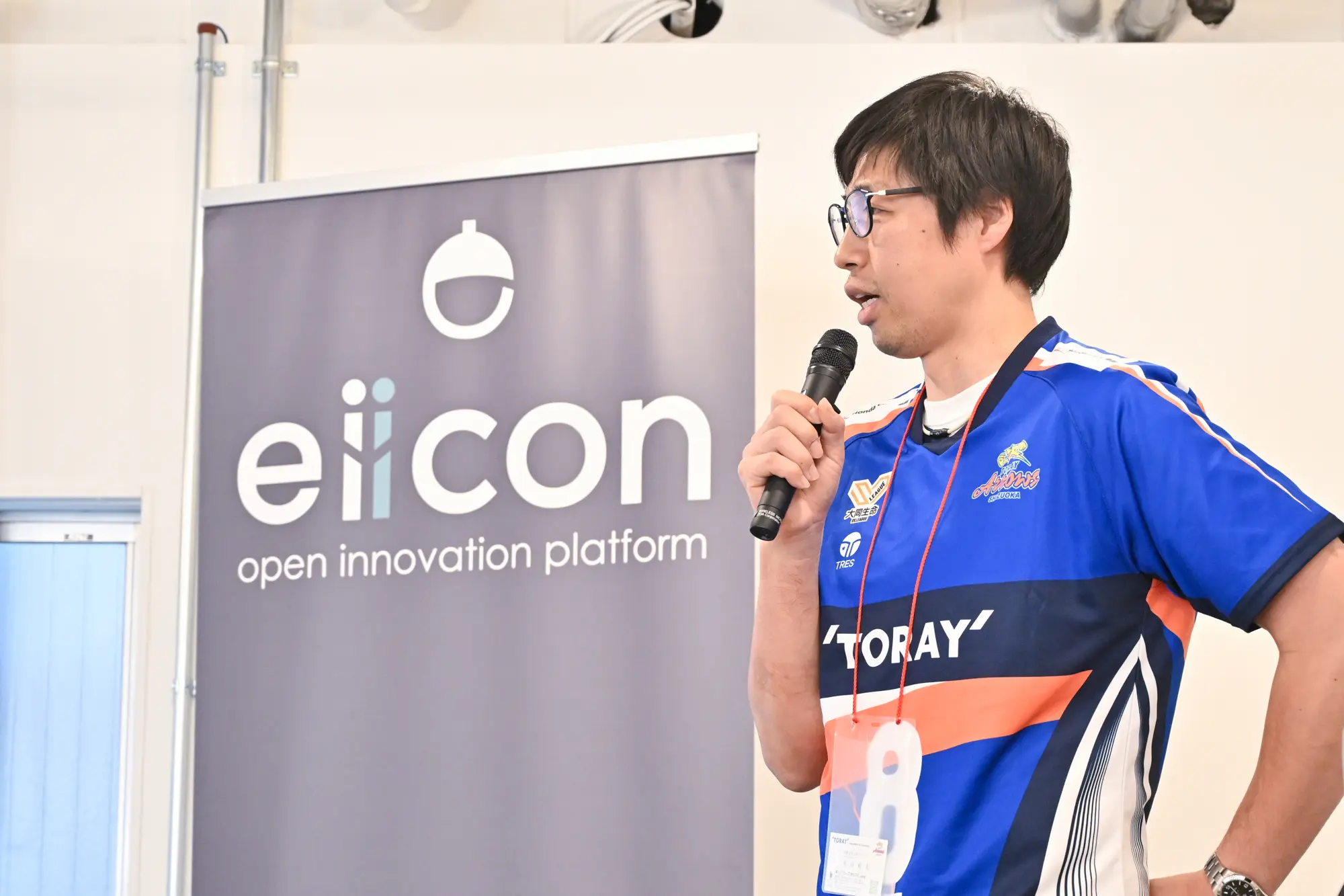 最初に登壇したのは、プロバレーボールクラブ・東レアローズ静岡と、健康経営支援を手がけるSmileJapanである。東レアローズ静岡は、1947年に東レの滋賀事業場に「東レ九鱗会」として創部。2024年に実業団チームから新会社体制での運営へと移行した。現在は静岡県三島市を拠点に活動している。