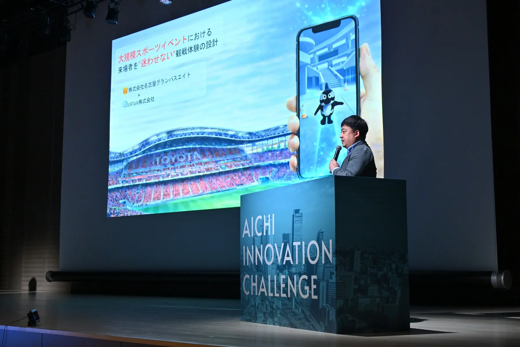 プロサッカークラブの名古屋グランパスエイトは、年間来場者数約60万人を誇り、昨年のリーグ戦平均入場者数は約3万2,000人にのぼる。一方で、ホームゲームにおける来場者案内は運営スタッフの人力に依存しており、スタジアムの複雑な構造も相まって、座席や売店・ブースへの導線に迷うケースが多いことが課題となっていた。