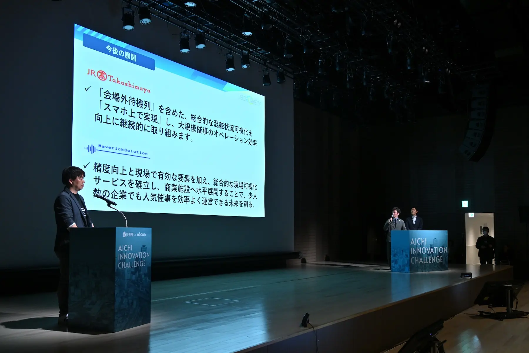 トークセッションを経て会場の空気がほぐれたところで、いよいよ今年度の成果を発表するピッチへ。代表して7つの共創チームが登壇し、実証の成果を披露した。