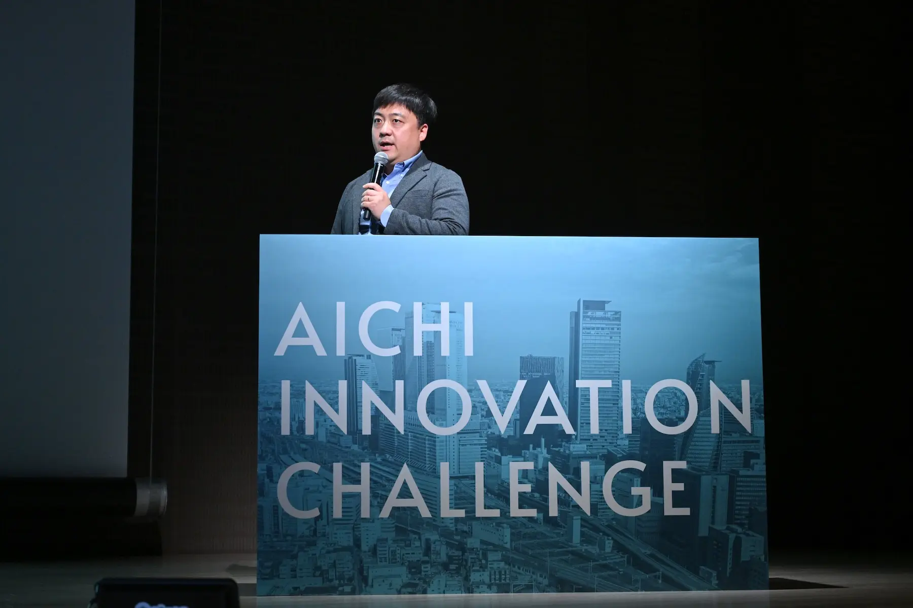 冒頭、イベント主催者である愛知県の鷹見氏が壇上に立ち、「あいちデジタルアイランドプロジェクト」の全体像を説明した。このプロジェクトは、中部国際空港島と常滑エリアを、オープンイノベーションの実証フィールドと位置づけ、2030年頃の普及が見込まれる先進事業やサービスを、先行して実用化する取り組みである。