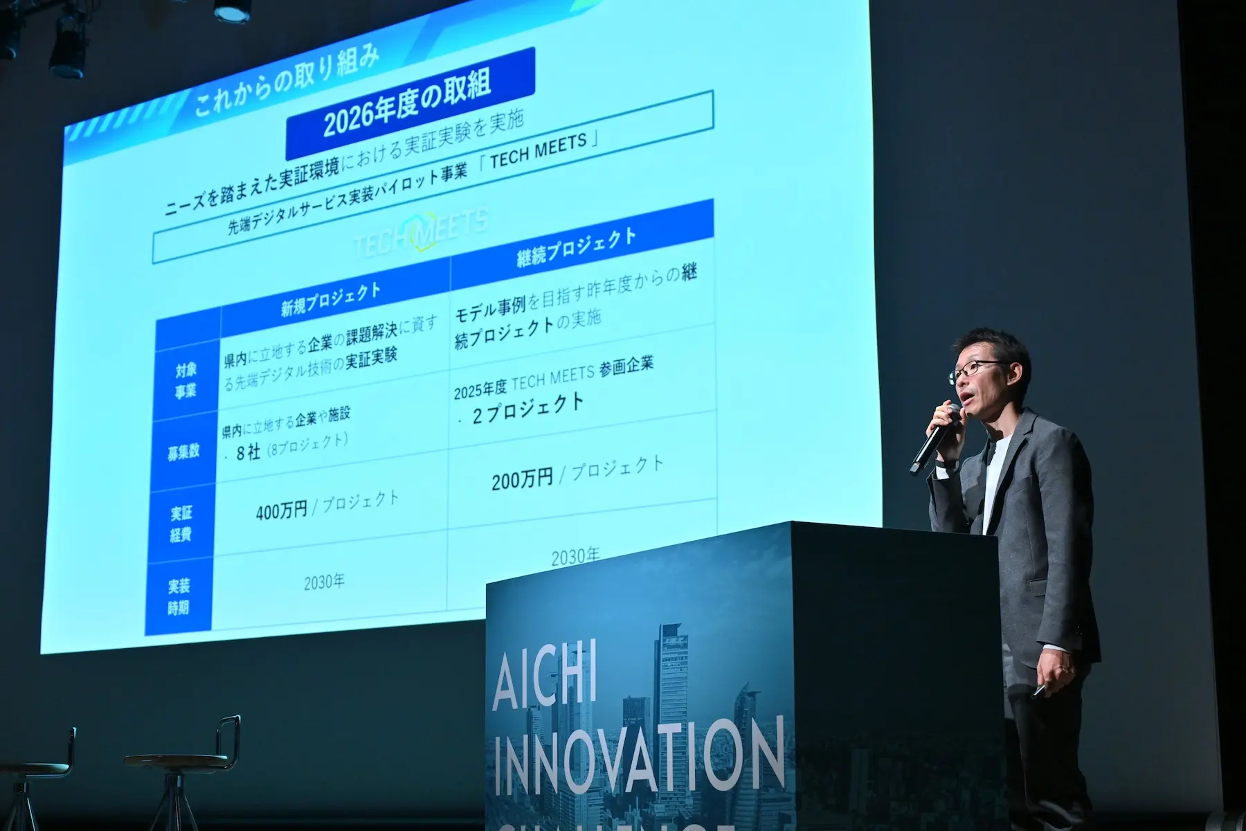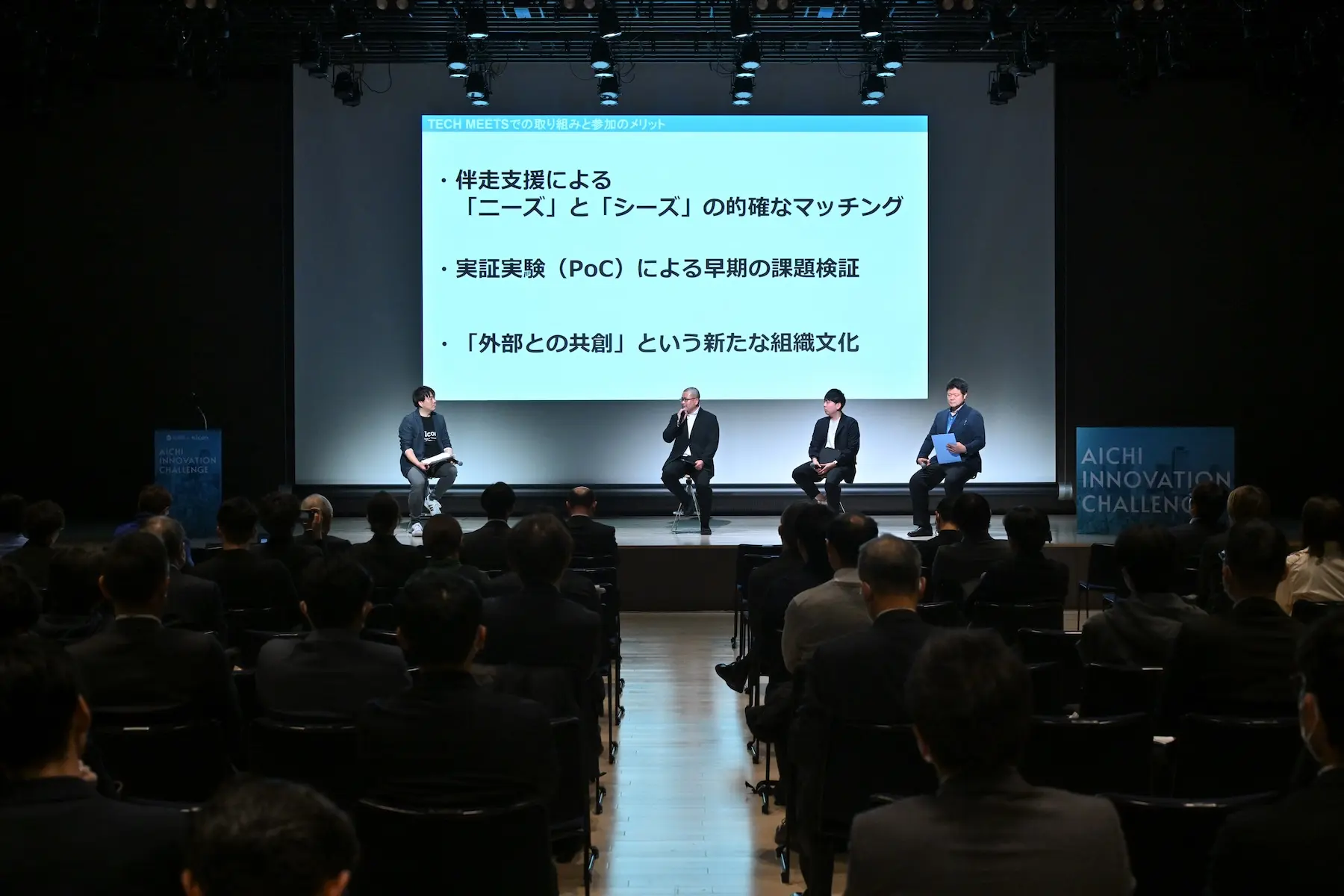 その一環で実施する『TECH MEETS』は、2022年度に始まったプログラムだ。開始当初は先端技術の実証実験を主軸に展開してきたが、2024年度からはニーズ企業(課題を持つ県内企業)とシーズ企業(課題解決策を持つ企業)をマッチングする事業へと発展していることが紹介された。
