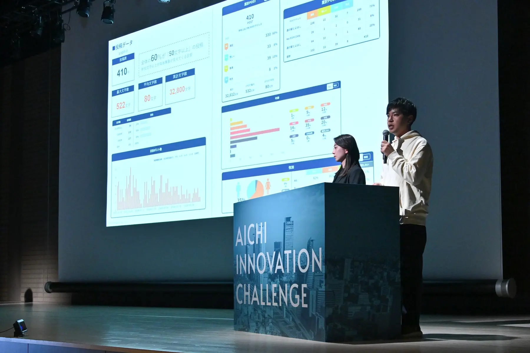 プログラム期間中は、「道の駅とよはし」内の3施設(コンセプトショップ/インフォメーション/ポップコーン専門店)で、「ホンネPOST」を試験導入。その結果、約2か月半で410件・総文字数3万字超の顧客の声を収集することができた。全体の60%が50文字以上の投稿となっており、分析に十分な回答を得ることができたという。