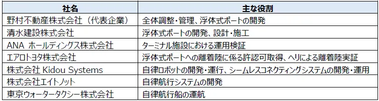 野村不動産、清水建設、ANAホールディングス、エアロトヨタ、Kidou Systems、エイトノット、東京ウォータータクシーで構成される事業グループは、東京都の「東京ベイeSGプロジェクト 令和5年度先行プロジェクト」において推進してきた、空飛ぶクルマ(eVTOL)用浮体式ポートを核としたマルチモーダルMaaSの実証成果を公表した。本取り組みは、陸・海・空の次世代モビリティをシームレスに接続する都市交通の高度化を目指すものであり、2023年10月より検証が進められてきた。